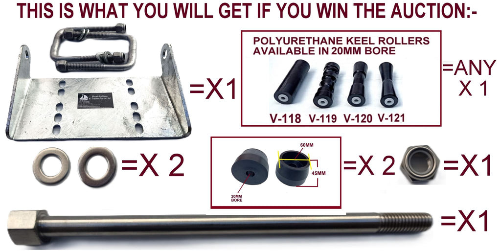 KEEL ROLLER SUPER HEAVY DUTY BRACKET+POLYURETHINE ROLLERS+END CAPS +16MM OR 19MM SHAFTS FOR BOATTRAILERS