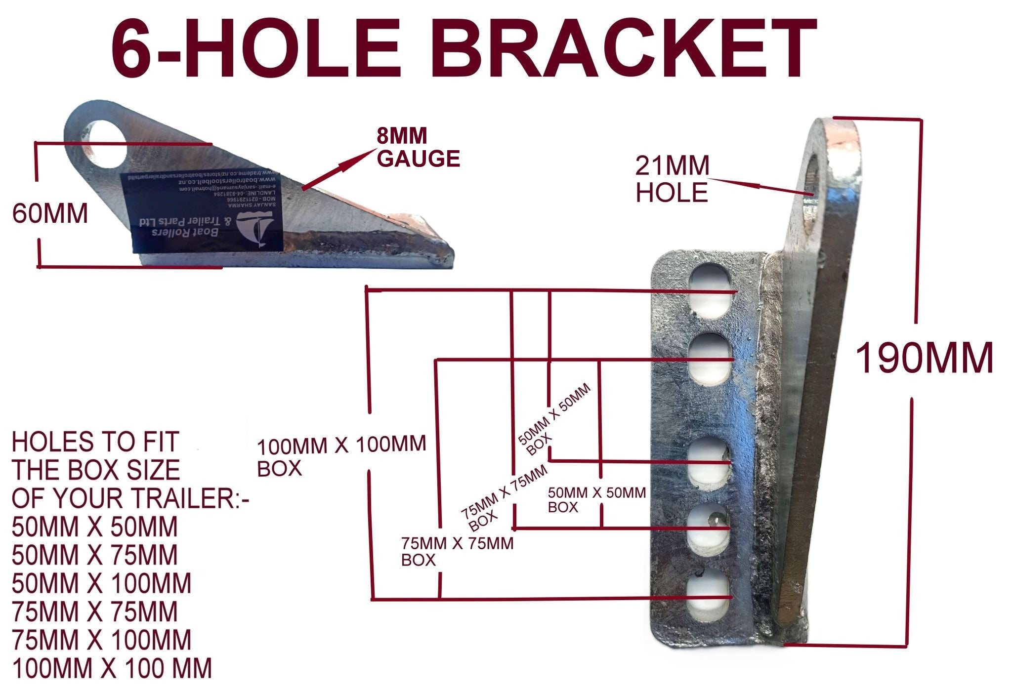 THESE BRACKETS HAVE 6- HOLES AND CAN BE MOUNTED ON ANY OF THE FOLLOWING FRAME TUBE/CROSS-SECTION AS PET SIZES GIVEN BELOW.