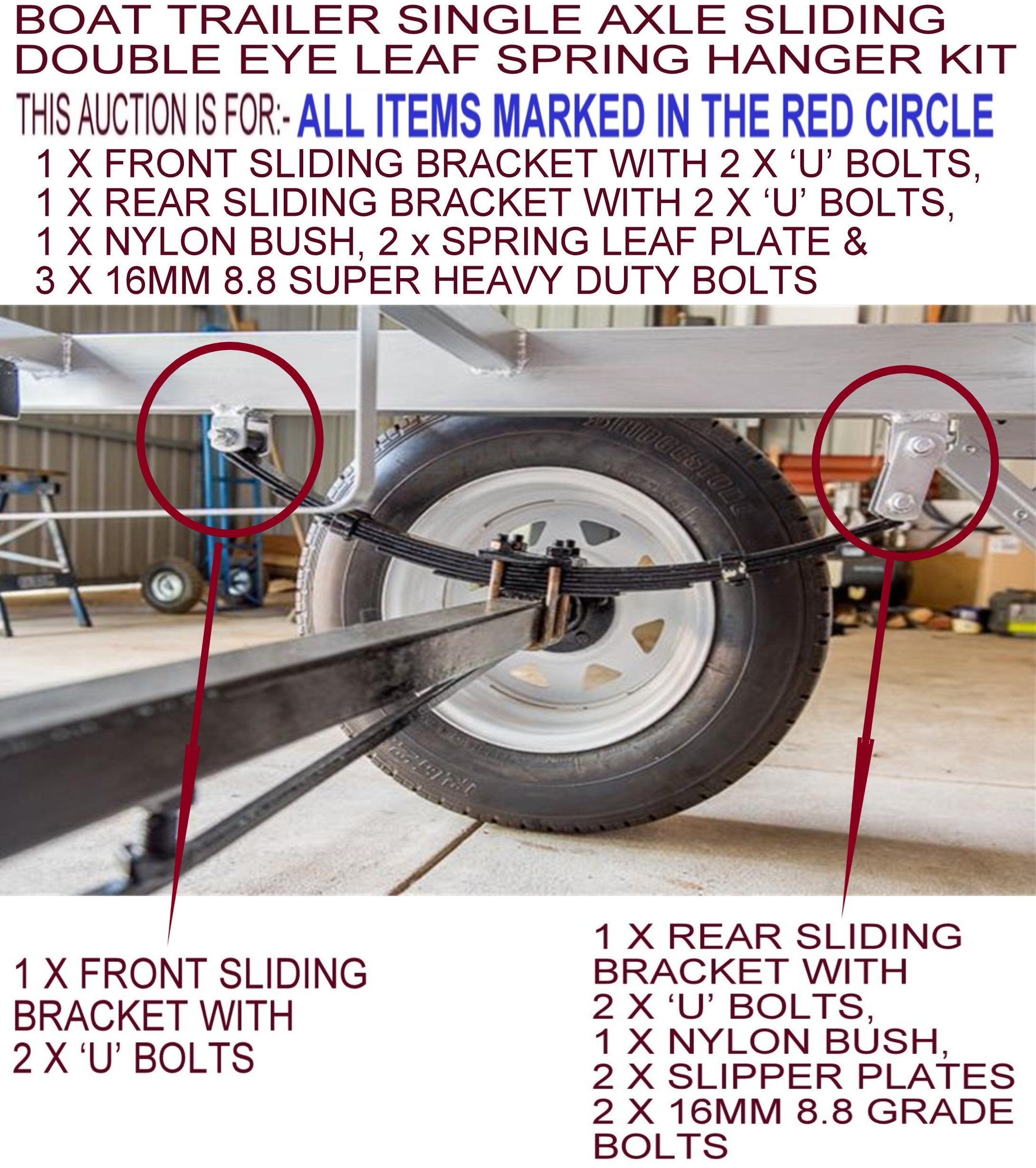 VERY SIMPLE TO MOENT/REPLACE MULTIPLE SPRING LEAF SIZES OF YOUR TRAILER.**