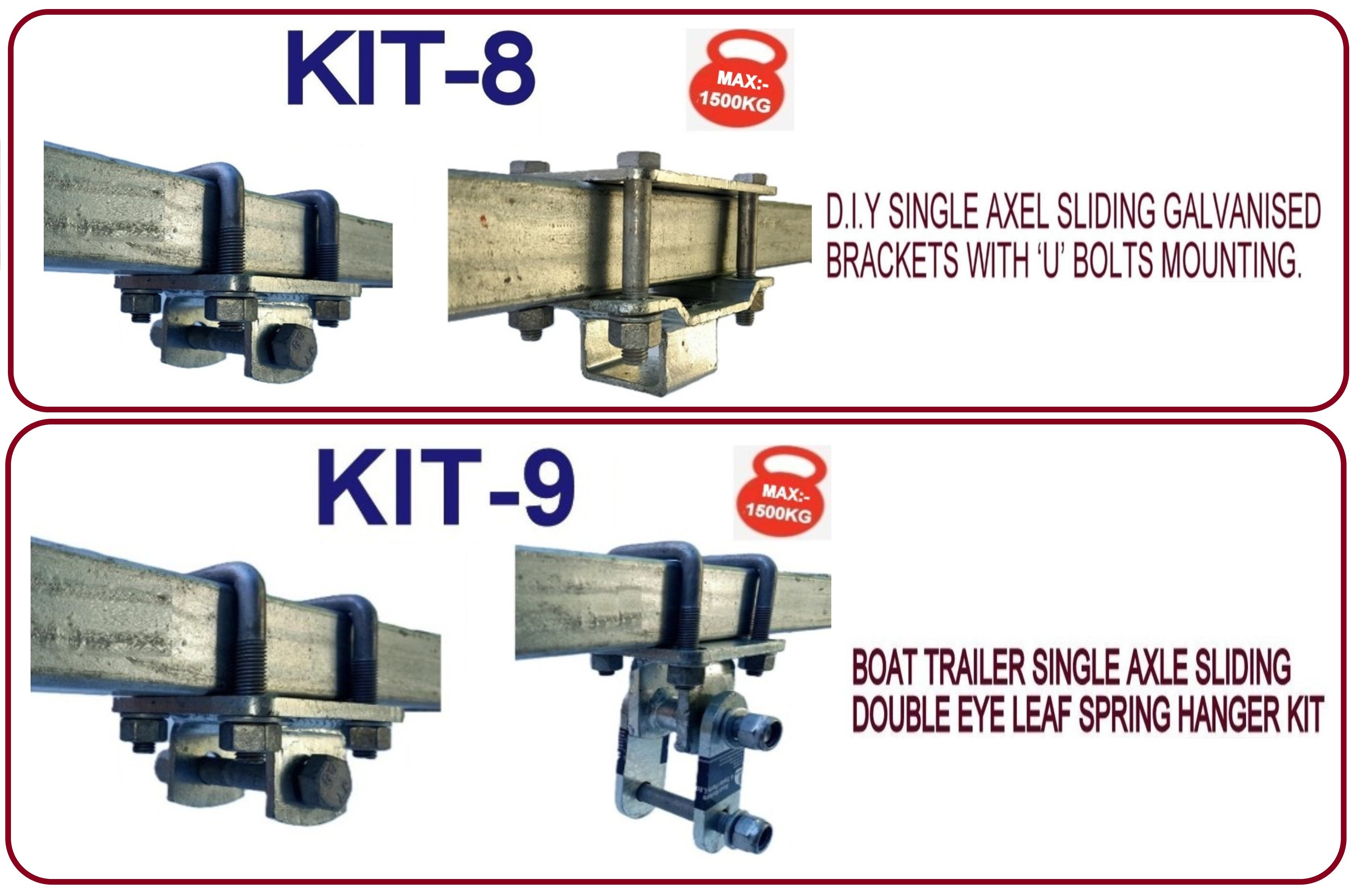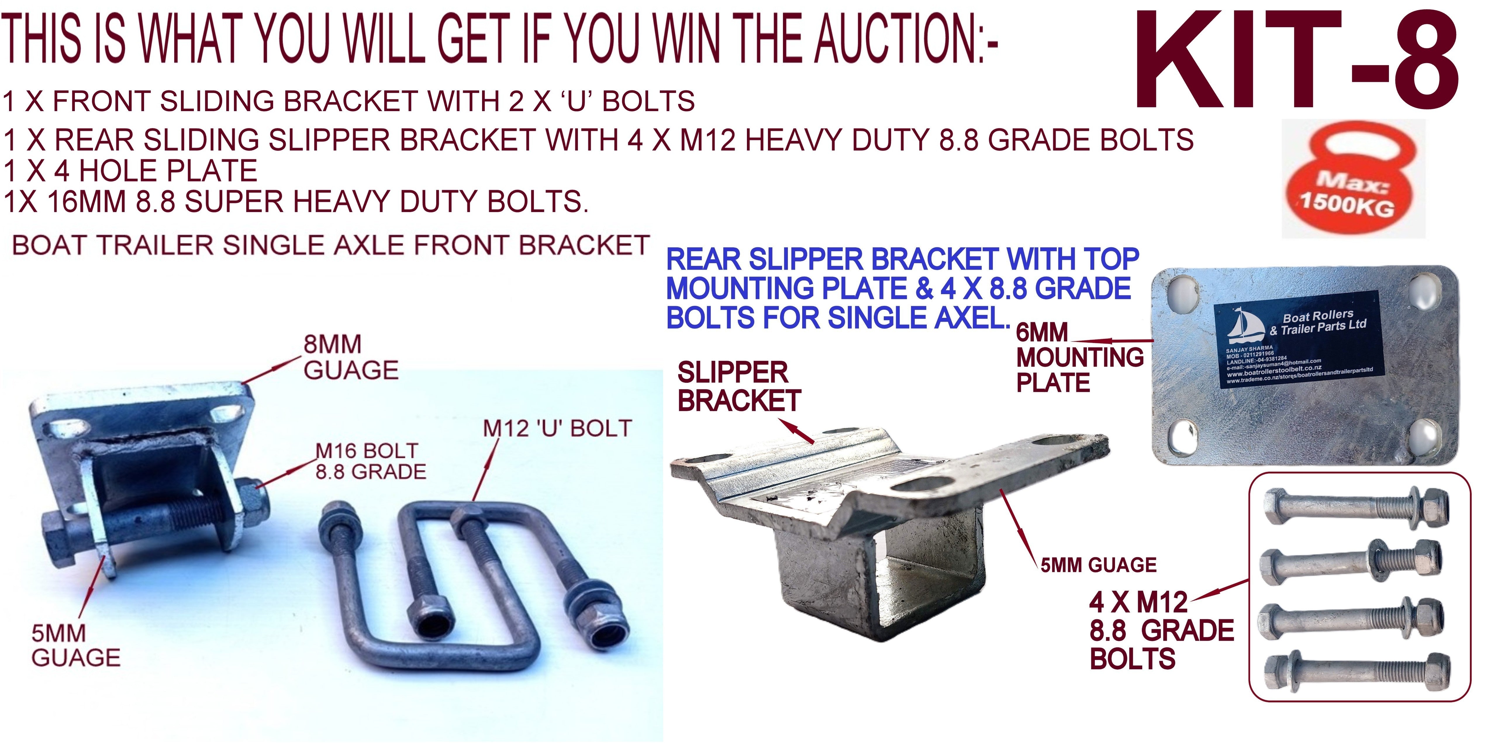 1)PLEASE SEND ME AN E-MAIL ON WHAT KIT NUMBER YOU ARE AFTER, THAT IS KIT-8 OR KIT-9 OR KIT-9 DOUBLE EYE WITH SUPER HEAVY DUTY BRACKETS