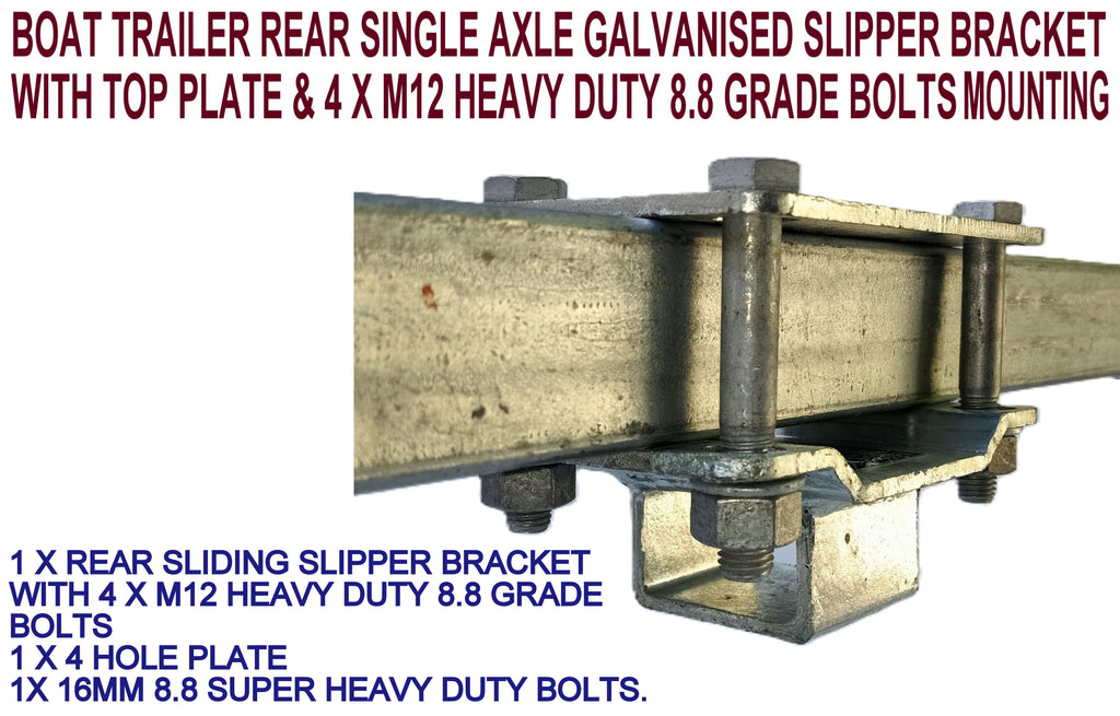 1 X REAR SLIDING SLIPPER BRACKET WITH 4 X M12 HEAVY DUTY 8.8 GRADE BOLTS