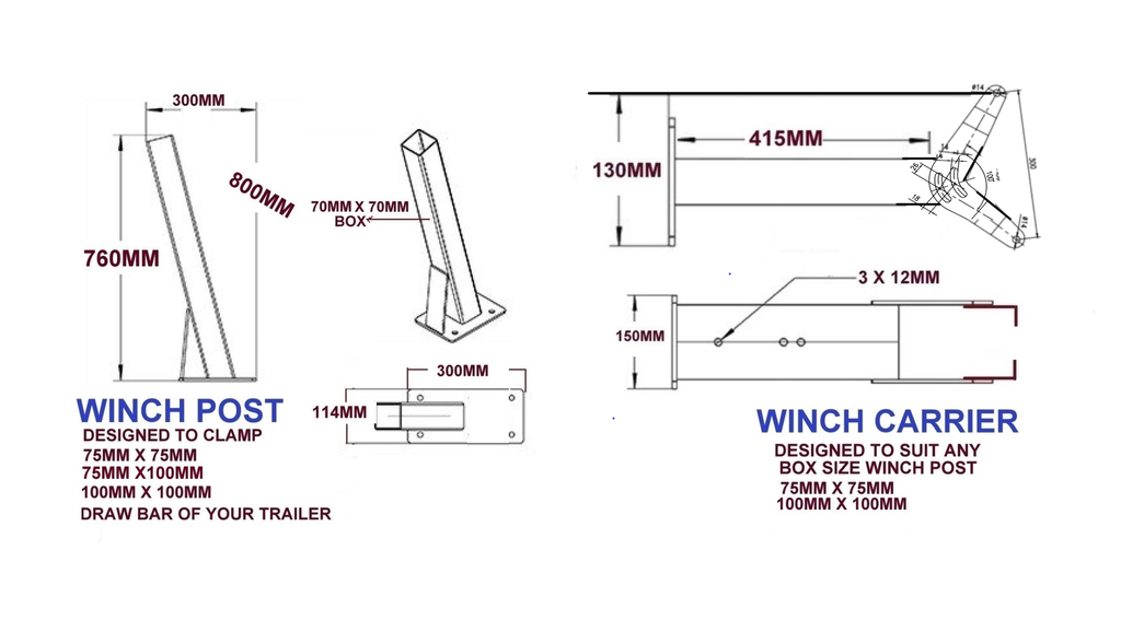 5) 2 X U BOLTS WITH NYLOC BOLTS TO CLAMP THE WINCH POST TO THE DRAWBAR OF YOUR TRAILER.