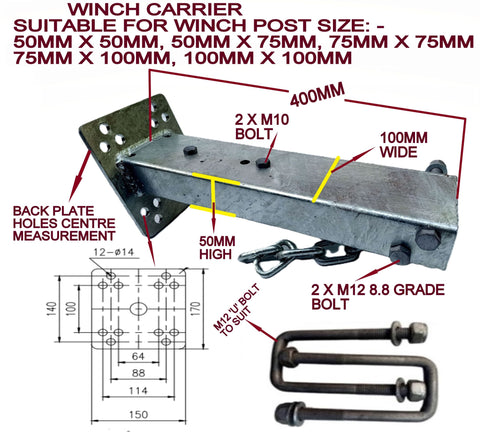 5) 2 X U BOLTS WITH NYLOC BOLTS TO CLAMP WINCH CARRIER TO WINCH POST.