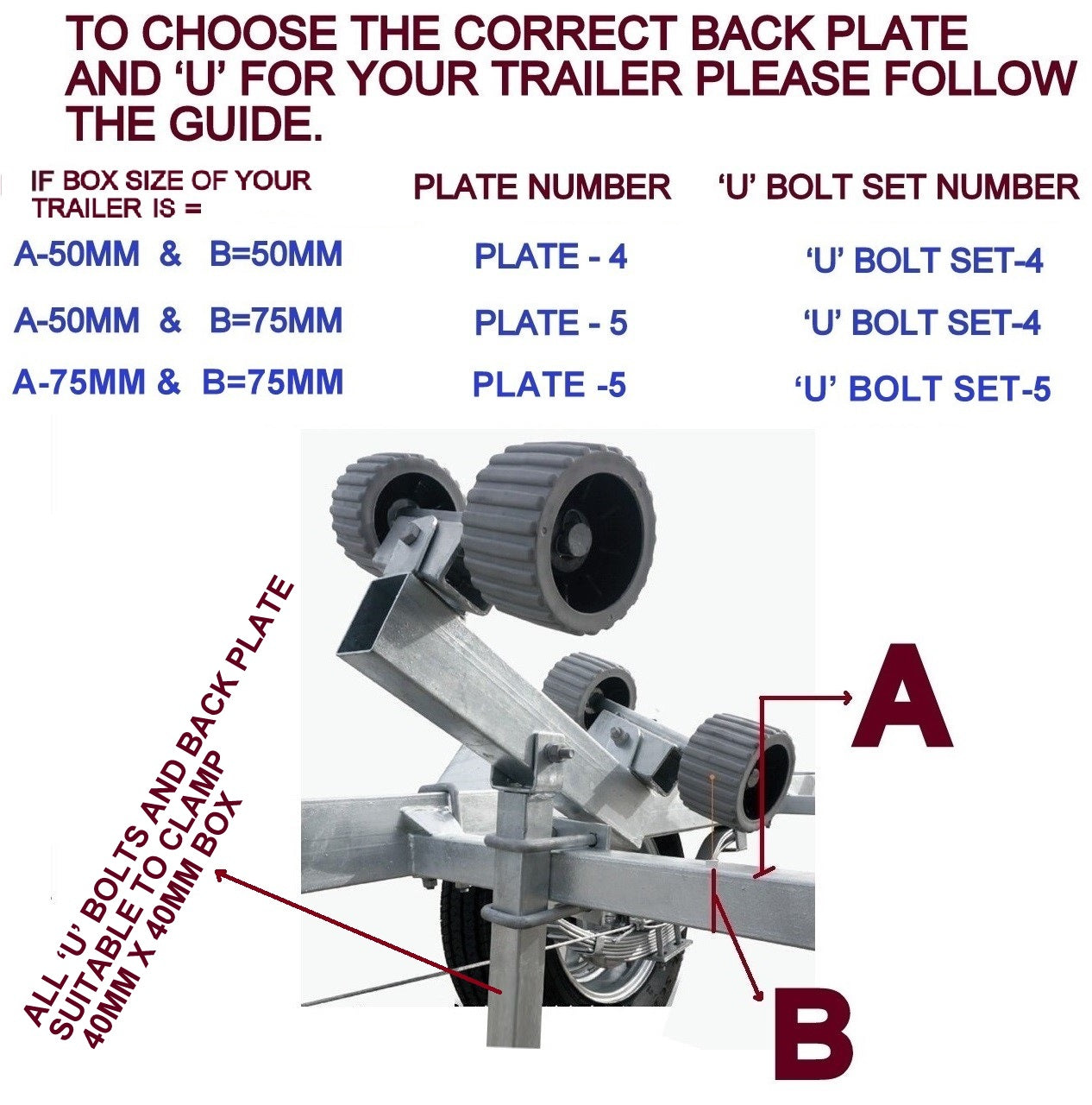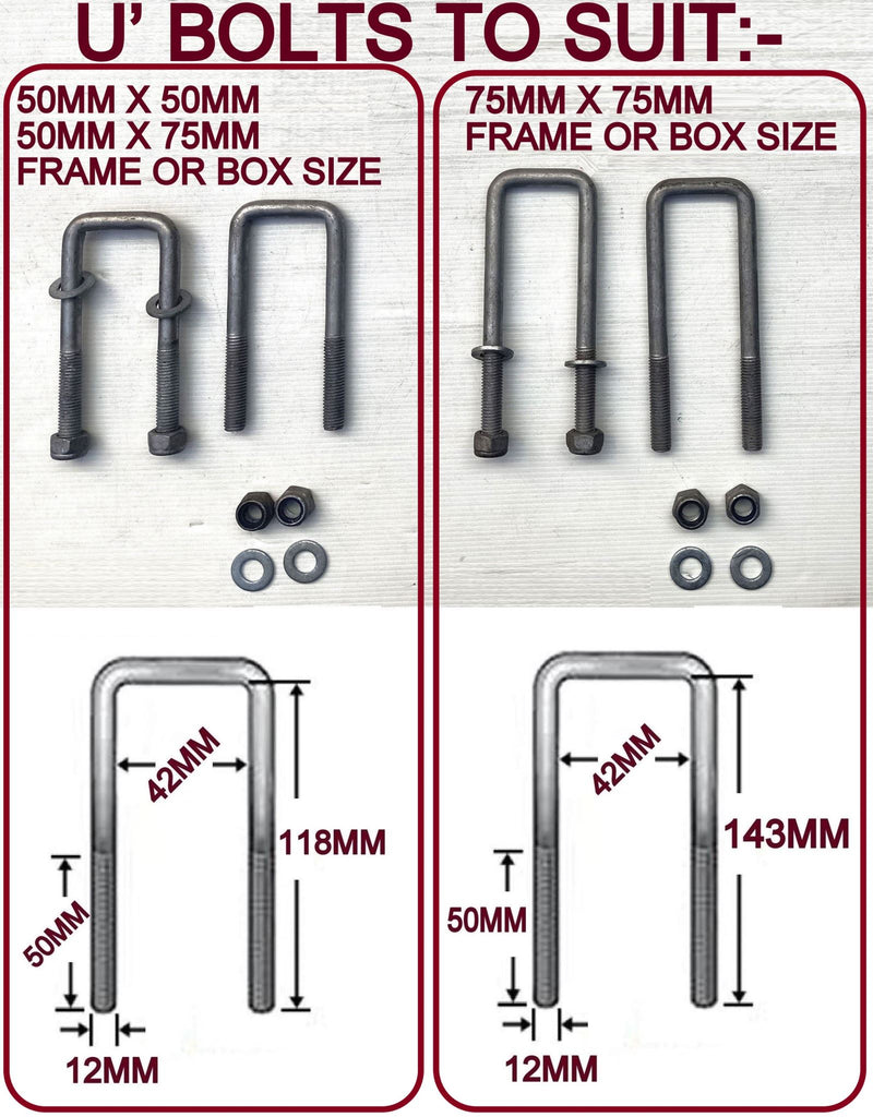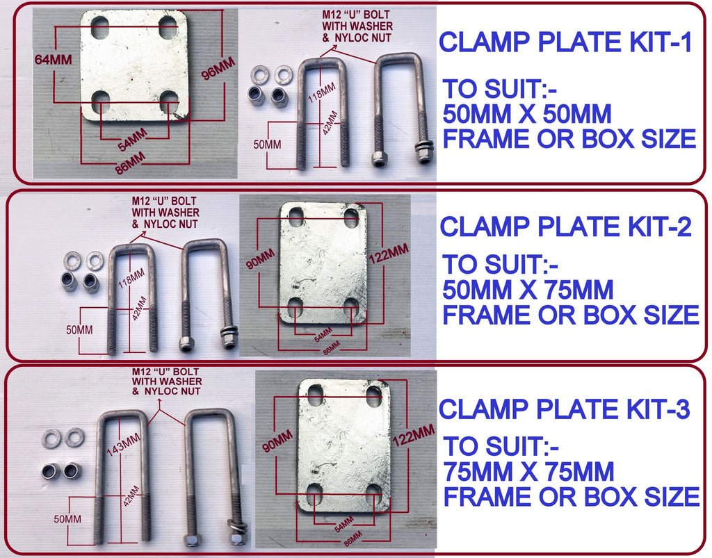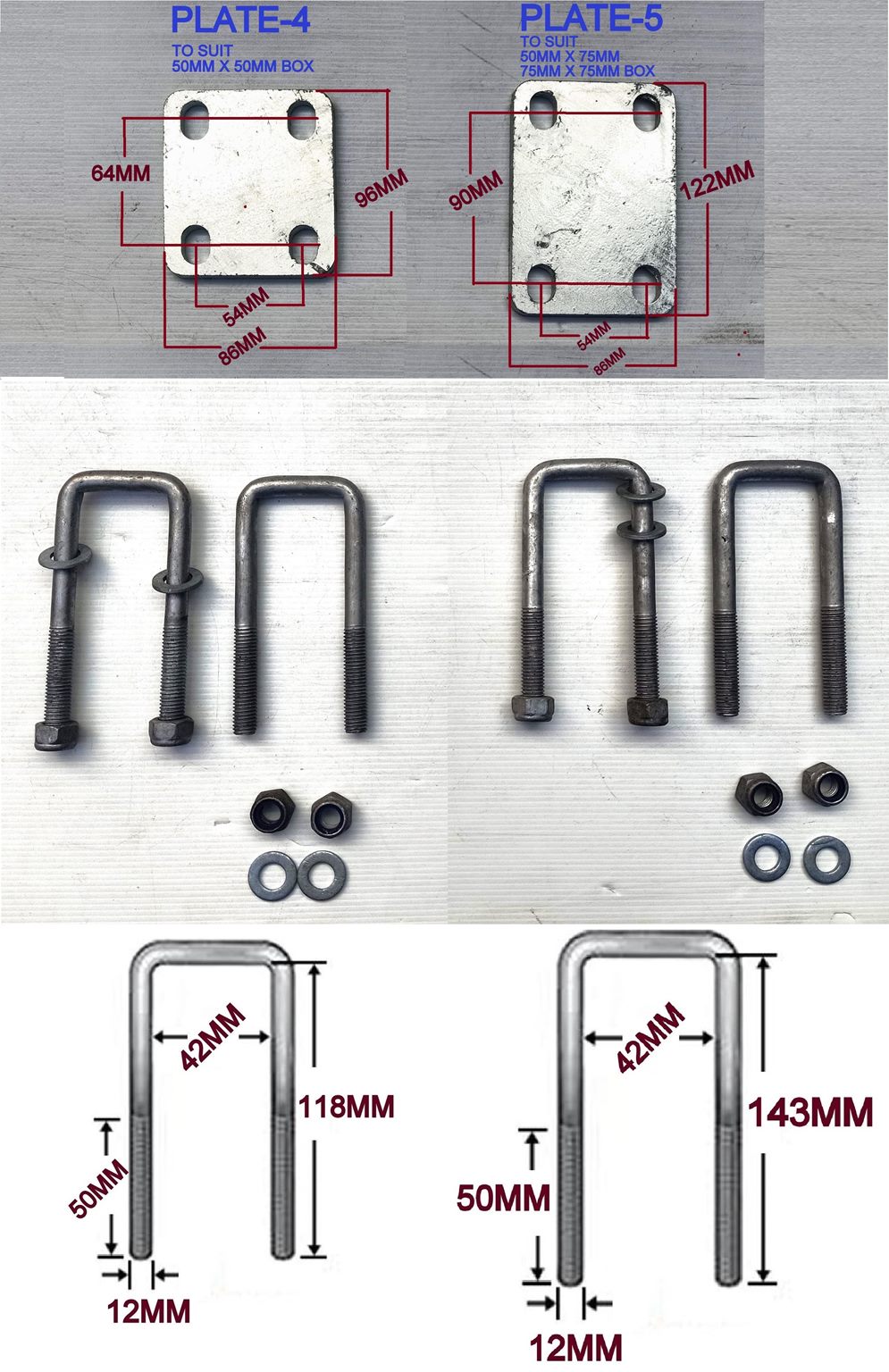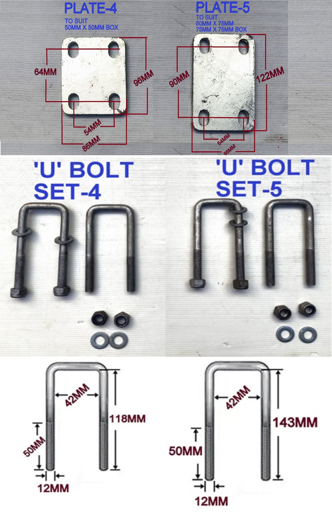 2)OR LET ME KNOW THE BOX SIZE OF YOUR TRAILER AND I CAN WORK OUT THE PLATE AND 'U' BOLT SIZE.