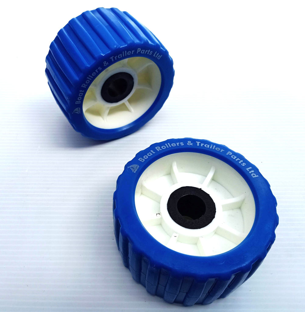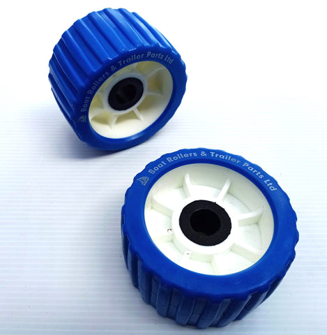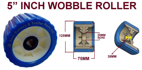 3) 2 X BLUE WOBBLE ROLLER-DIAMETER -125MM/WIDTH - 75MM/BORE -20MM OR 22MM WITH BUSHES. IF YOU WANT BLACK, PLEASE LET ME KNOW BY E-MAIL ONCE YOU WIN THE AUCTION.