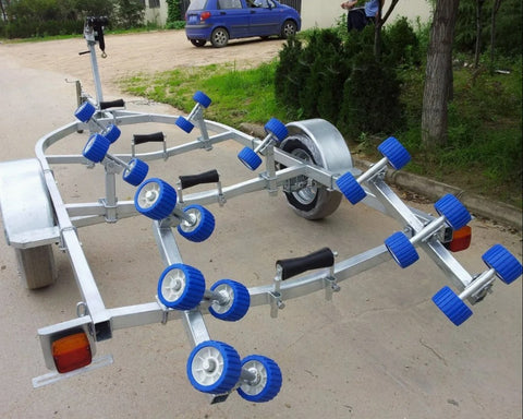 2) ALL ROLLER ARMS ARE OFF-CENTRED. THIS HELPS THE ROLLERS TO ALWAYS DROP TOWARDS THE KEEL AND U DON'T HAVE TO RUN AT THE BACK AND TAP THE ARM EVERY TIME U LOAD THE BOAT ON THE TRAILER.