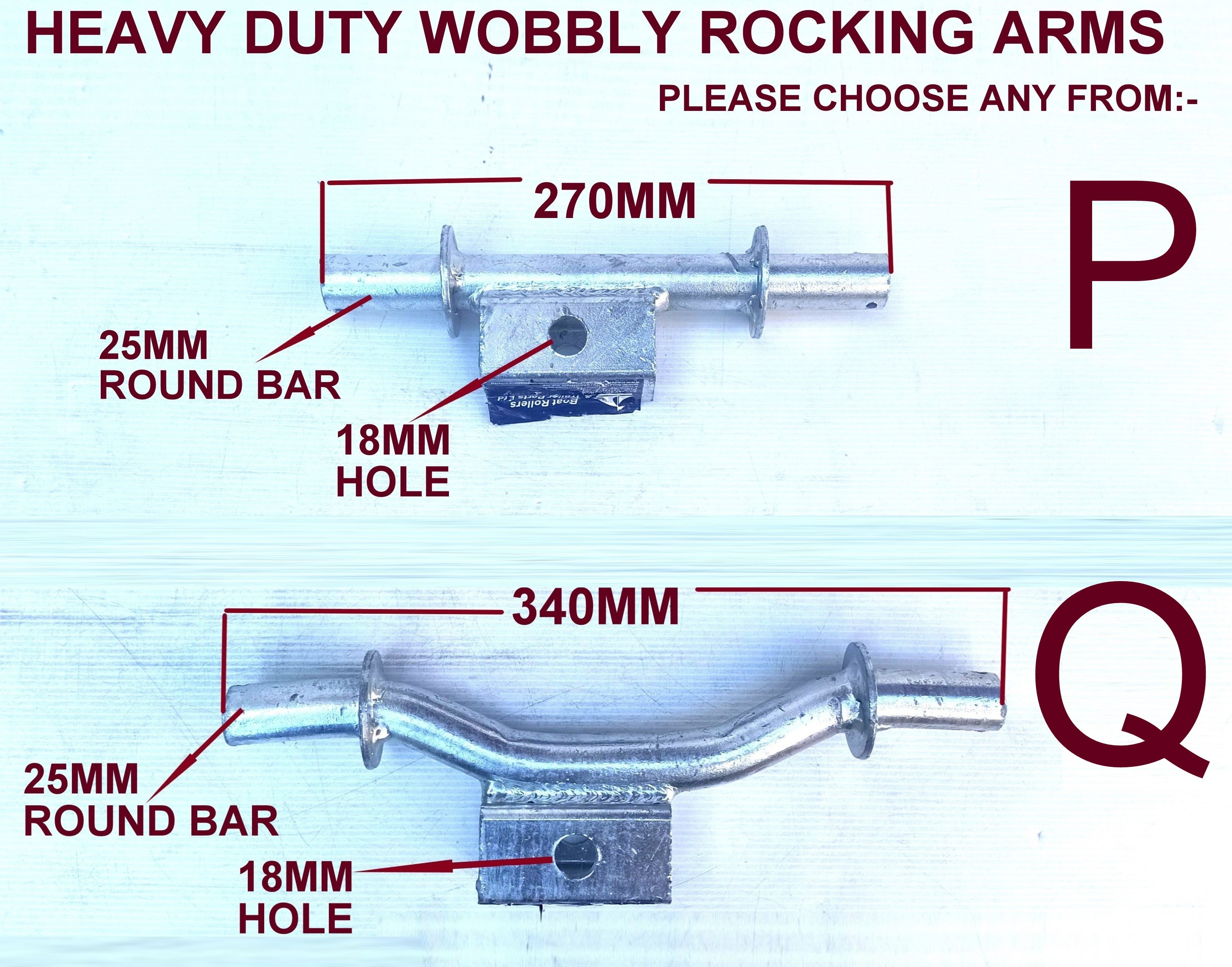1) 8 X WOBBLE ARM(MADE FROM 20MM OR 25MM ROUND BAR YOU CAN SWAP ARMS PLEASE VIEW AUCTION PICTURES AND CHOOSE ARMS FROM-P OR Q.