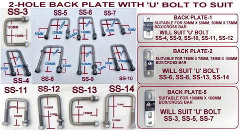 1) 1 X M12 (12 MM THICK) FULLY GALVANIZED 'U' BOLT WITH GALV. NYLOC BOLT AND WASHER.